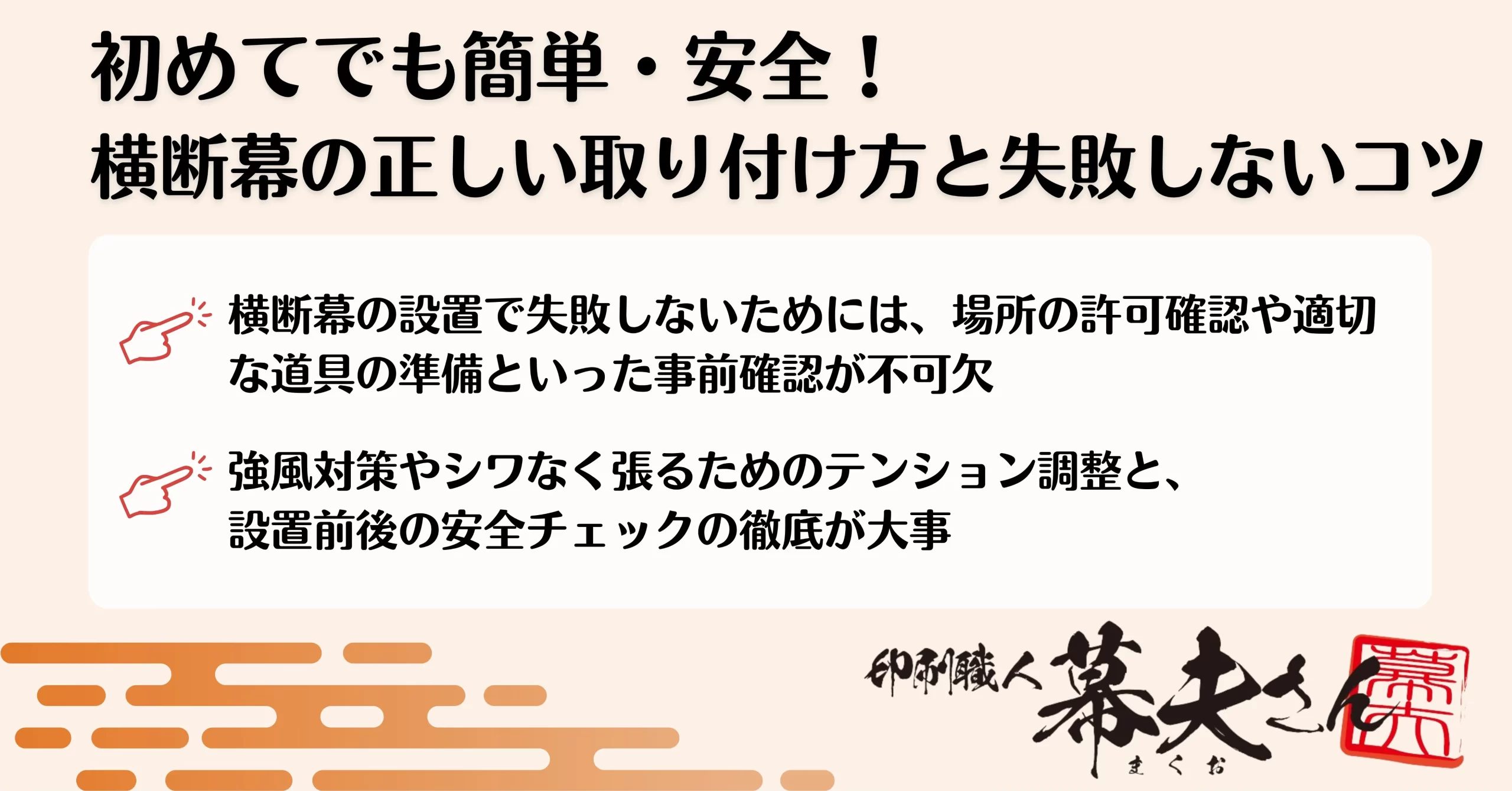 横断幕の取り付けは、ただ固定すれば良いというわけではありません。「見た目の美しさ」と「揺るぎない安全性」を両立させることが重要です。